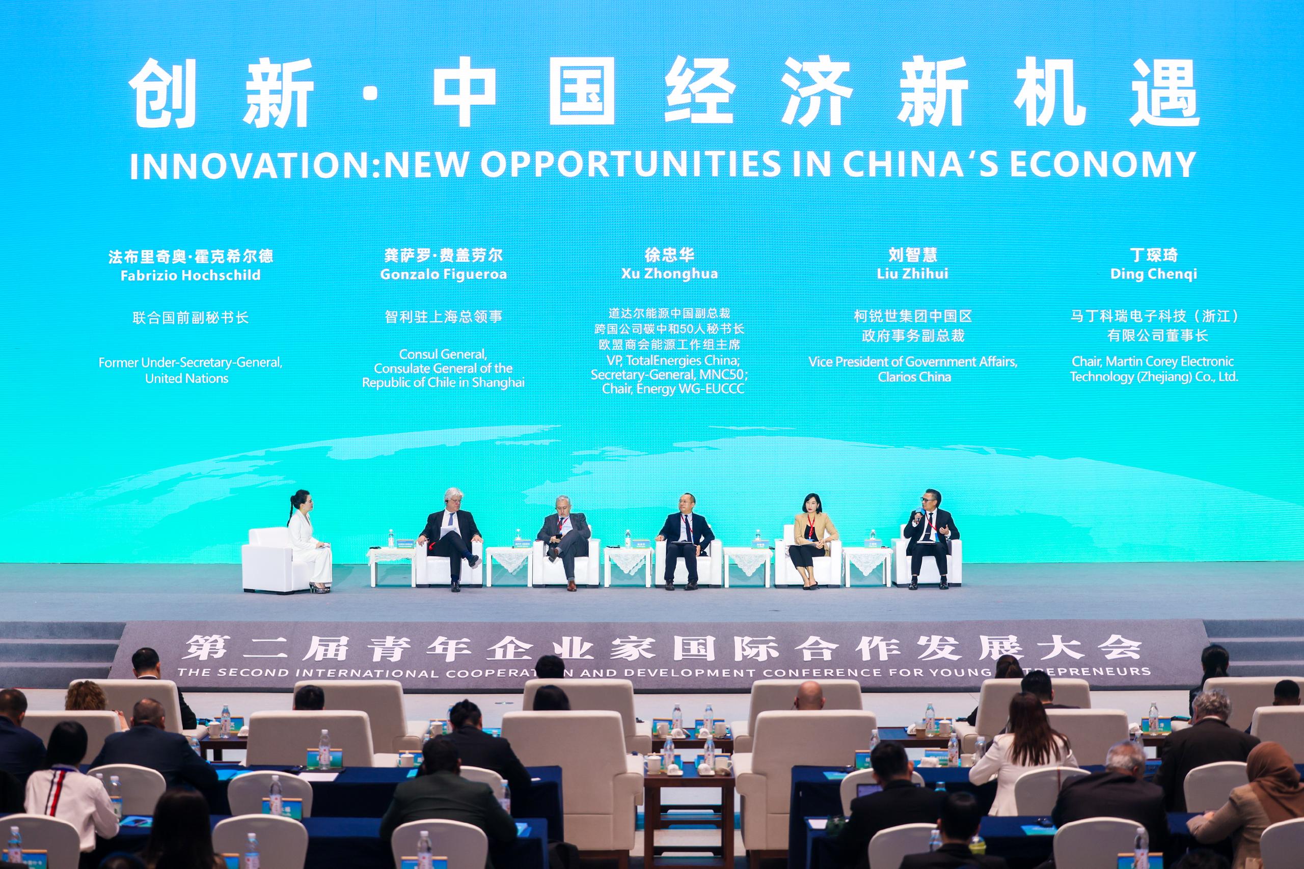 On the morning of October 29, the 2nd International Cooperation and Development Conference for Young Entrepreneurs, themed “Sharing New Opportunities, Shaping New Developments,” opened in Anji County, Huzhou City, Zhejiang Province. Attendees at the opening ceremony included Wang Yi, Vice president of the All-China Youth Federation; Fabrizio Hochschild, former Under-Secretary-General of United Nations; Chen Hao, Secretary of the Communist Party of China Committee of Huzhou CIty; Zhou Suhong, Secretary of the Communist Youth League Zhejiang Provincial Committee; and Deborah Bottreau, Chair of the Executive Committee of the International Alliance of Youth Entrepreneurs Associations and Chair of the ASEAN Young Entrepreneurs Council. Thomas Lamanauskas, Deputy Secretary-General of the International Telecommunication Union (ITU), delivered a video speech. Liu Aiping, Chairman of the China International Youth Exchange Center, presided over the ceremony.